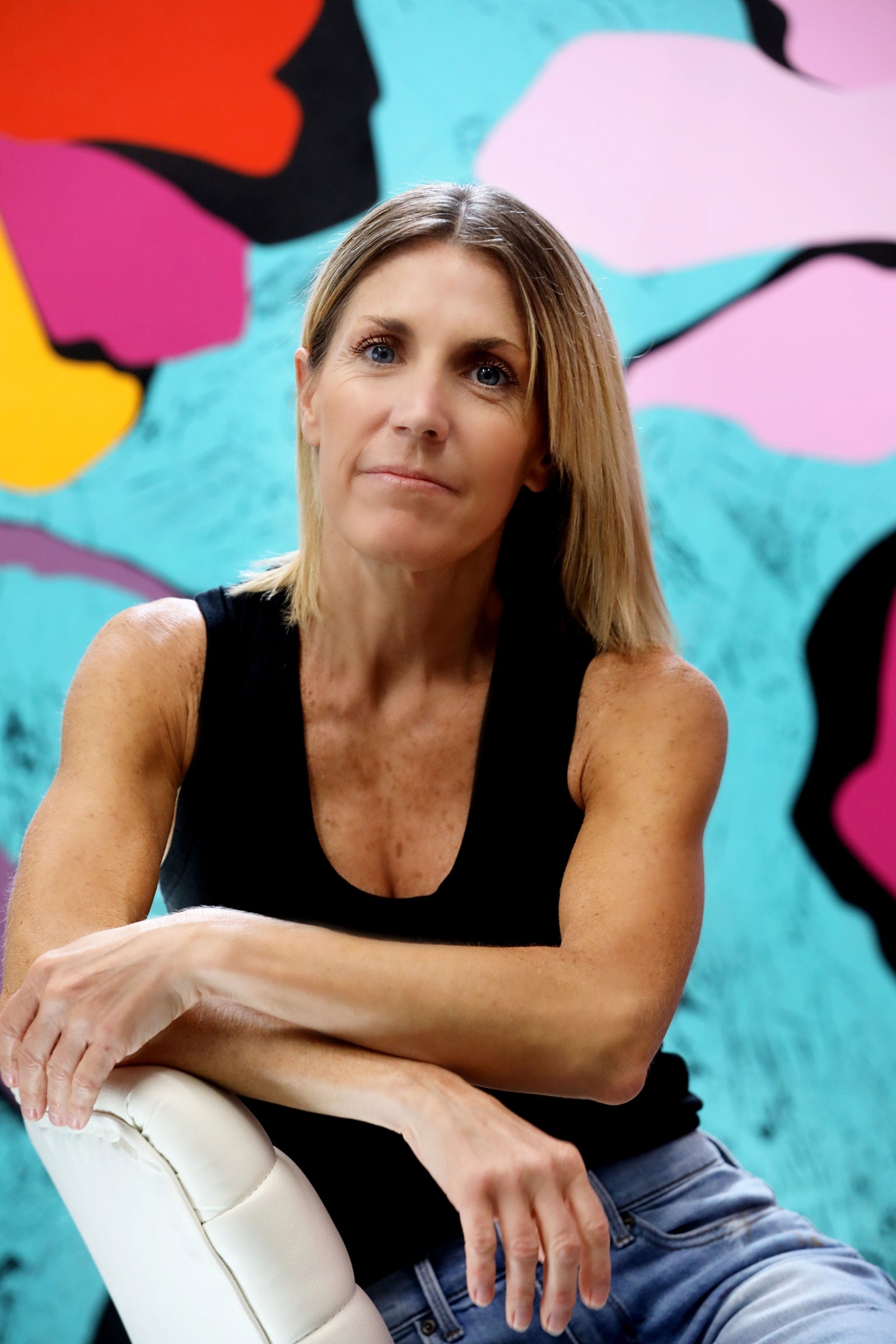 Allison is fearless in her use of color, employing a bold palette and hand-painted hard-edges, creating a symphony of form and structure. Each brushstroke leaves a tactile quality that invites the viewer to engage in a world of vivid emotion, and into the heart of color and form.