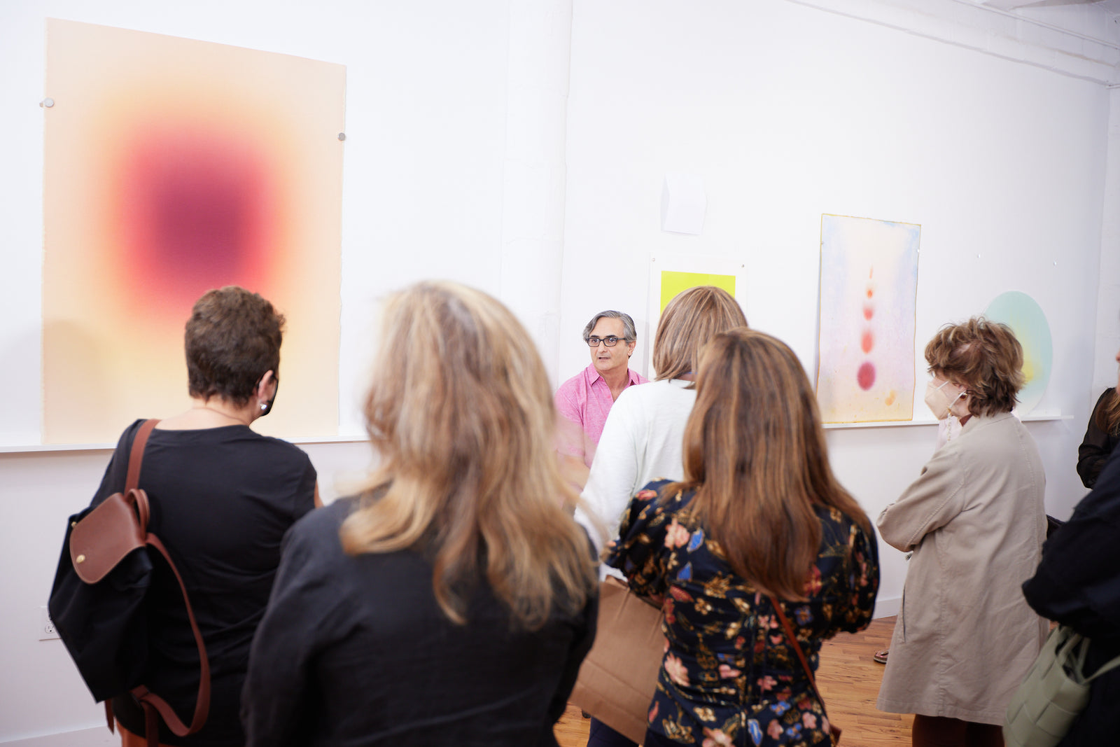 Driven by color and an abstracted essence, Poisson’s work balances graphic elements with organic fluidity. His work is a collaboration with natural forces, a fusion of art and science, as he experiments with traditional and unconventional materials born of a desire to do something new with pigment and surface. The work offers pure, experiential encounters as tones vary from midrange to surprisingly intense and radiate as the viewer interacts with each piece, especially when viewing the work from different angles. Poisson's work ranges from subtlety to intensity; in most, both qualities occur in the same work. In his monotone works, he commands the attention of the viewer to see one color dispersed into many. Other works explore the subtle transitions among multiple colors. Poisson’s effortless blending techniques fuse the pigments so naturally that they could be mistaken for a snapshot of the earth, or even the cosmos. As a young artist, Fred Poisson studied with the Swiss artist Claude Saucy, who was himself a student of Max Bill and the Bauhaus school. Poisson has experienced life among diverse cultures, having lived on four continents and in the South Pacific. He currently lives and works in New York City after many years as a Block Island, Rhode Island, resident. In 1992 Poisson received a BFA in painting from Rhode Island School of Design. He has exhibited both nationally and internationally.
