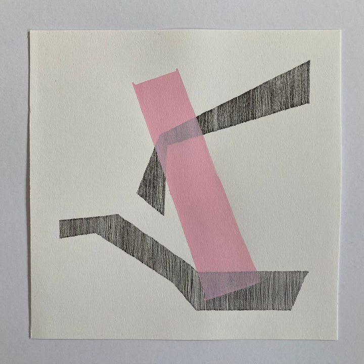 Abstract geometric, hard-edge artwork on paper painted with neutral palette.