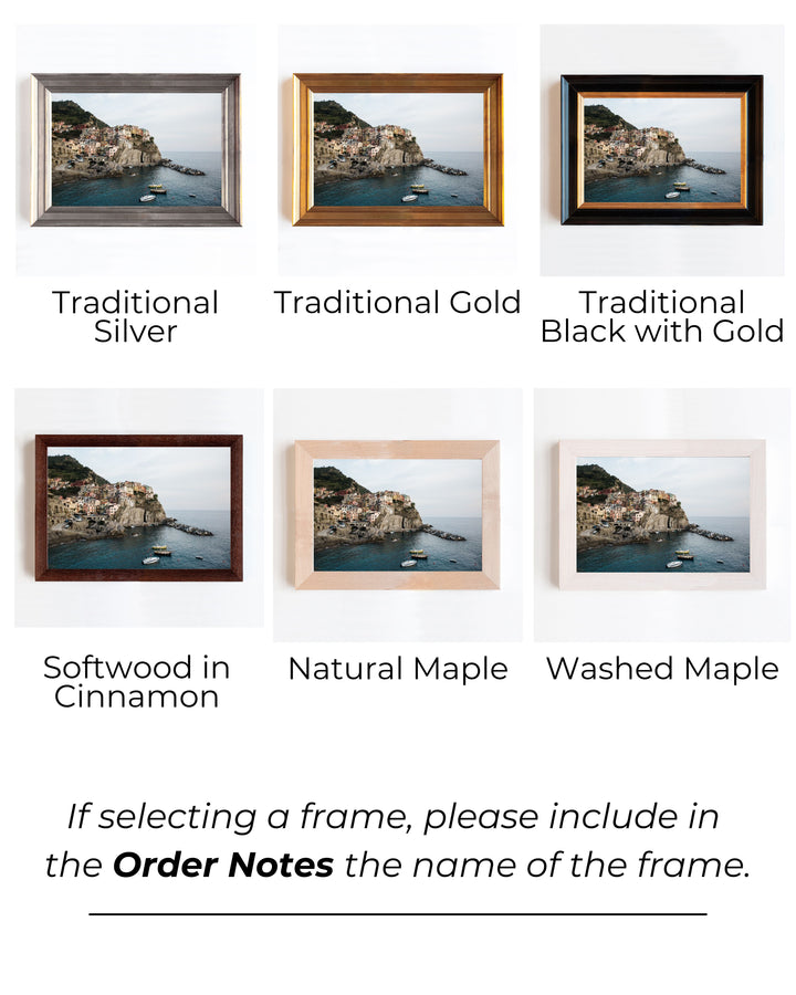 Frame: 3/4" face x 1 1/2" profile square cap or 5/16" face x 2 1/8" profile float frame in your choice of black, white, silver, or gold.